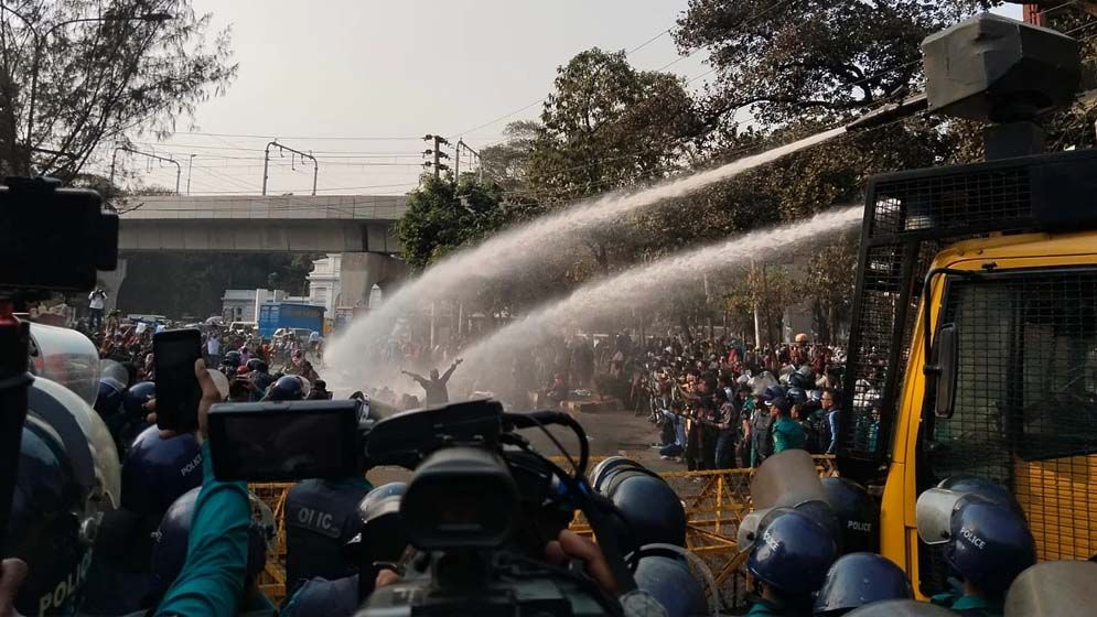 কাঁদানে গ্যাস ও জলকামান ব্যবহার এবং লাঠিপেটা করে সচিবালয়মুখী সড়ক থেকে আন্দোলনকারীদের সরিয়ে দিয়েছে পুলিশ।