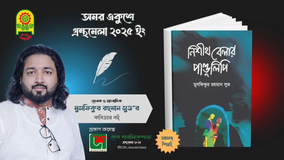 রোববার অমর একুশে গ্রন্থমেলার ১৬তম দিনে মেলায় এসেছে জনপ্রিয় তরুণ লেখক ও সাংবাদিক মুসফিকুর রহমান সুভর ৩য় বই ‘নিশীথবেলার পাণ্ডুলিপি’। এটি সমসাময়িক বিষয়ের ওপর রচিত একটি কবিতার বই।